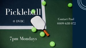 Pickleball Pickleball Pickleball In the hall - 7:00pm Mondays. Experienced pickle-baller or new to the game – all are welcome to come join in the fun. For more information – call Paul on 0409 638 072